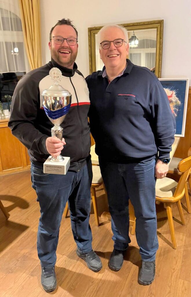 Nach weit über drei spannenden Stunden standen dann die diesjährigen Sieger fest. Diesmal siegte Markus Späth, den zweiten Platz erkämpfte sich Hubert Leist und den dritten Platz eroberte Alexander Donath. Vorstand und Organisator, Hubert Leist, durfte anschließend den Siegerpokal und die Preise übergeben. Beirat Siegfried Simm war es wieder gelungen, interessante Preise von befreundeten Sponsoren des Vereins zu organisieren. So gab es Gutscheine für Restaurantbesuche, Einkäufe, und sogar für ein Spanferkel zu gewinnen, welches von den Familien Scherrenbacher großzügig gespendet wurde. Allen Sponsoren dafür ein herzliches Dankeschön!